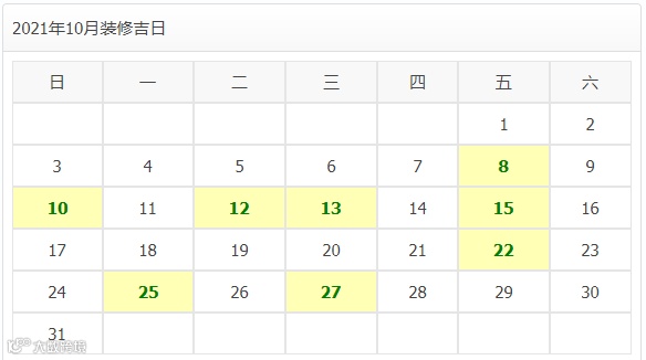 2021年10月装修开工吉日