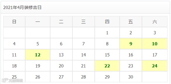2021年4月装修开工吉日