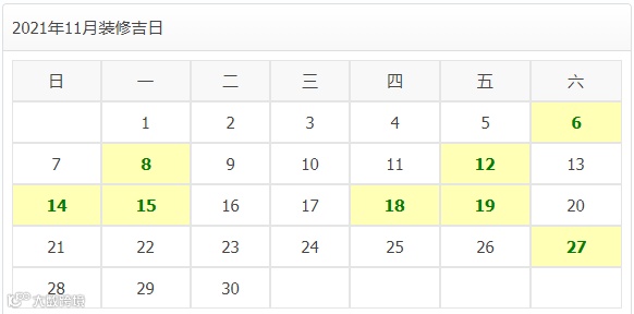 2021年11月装修开工吉日
