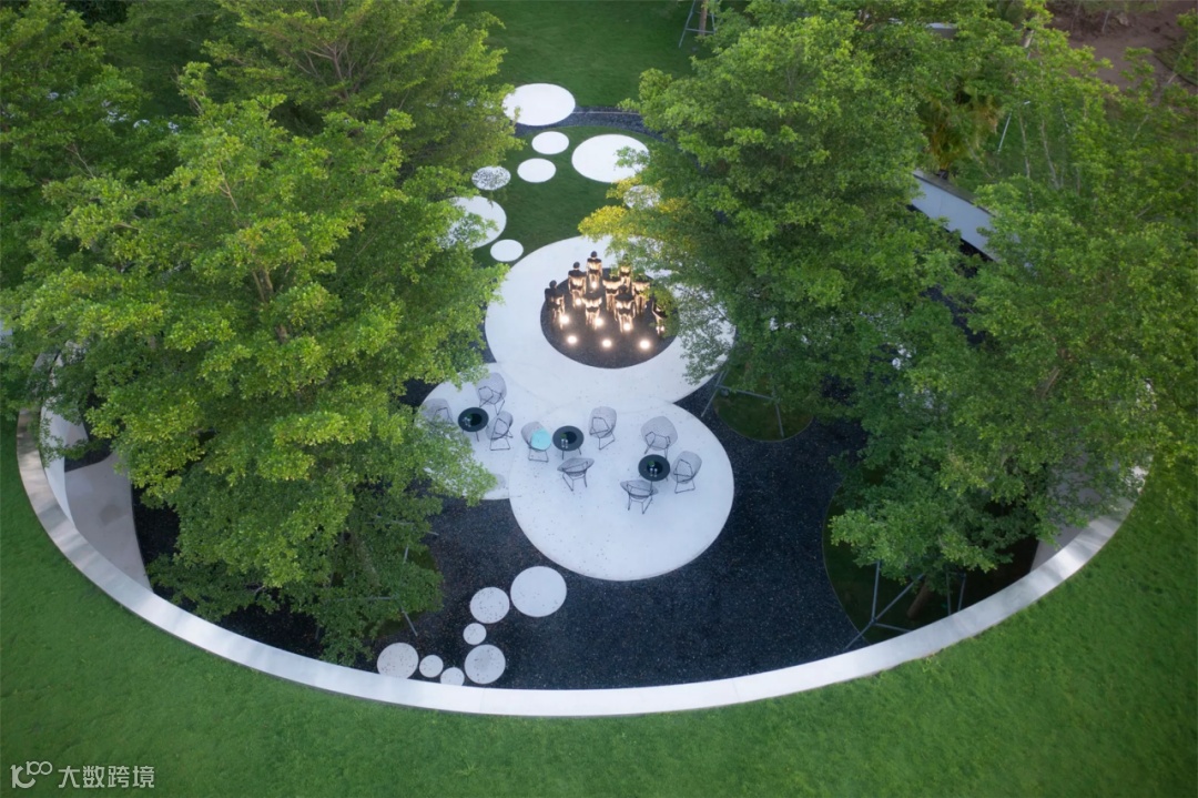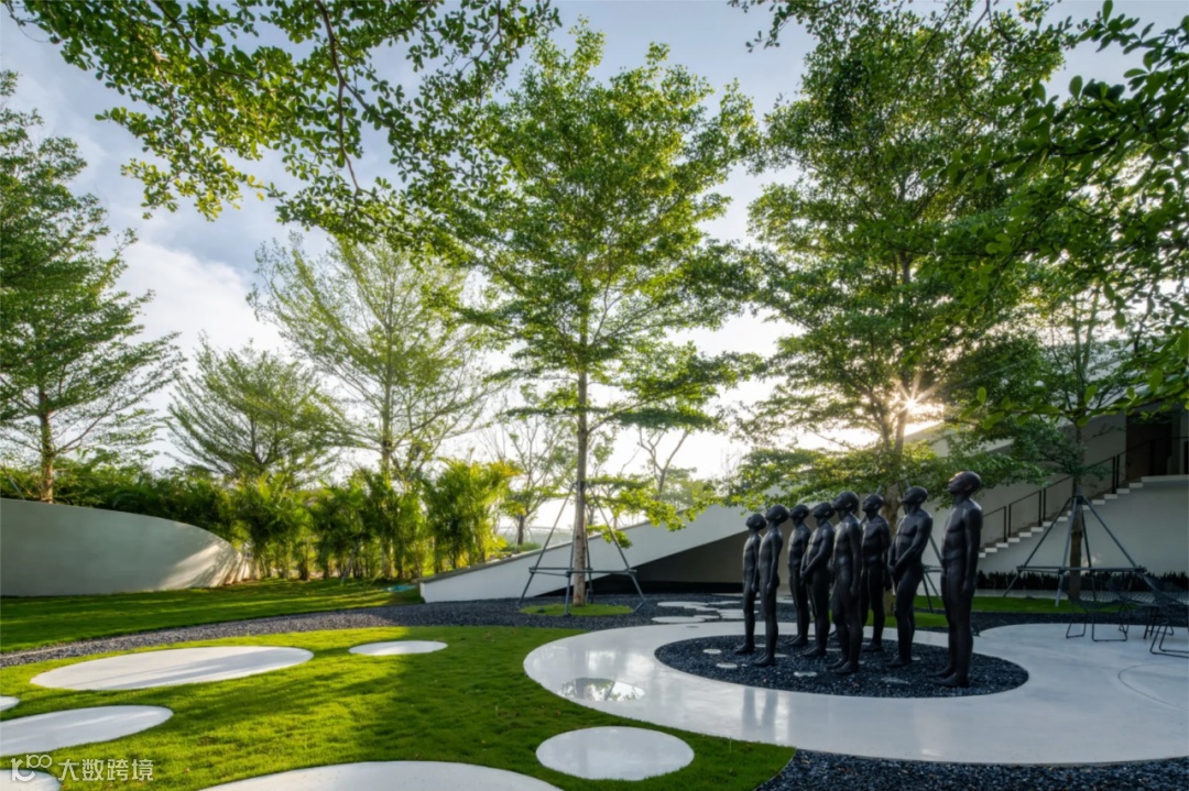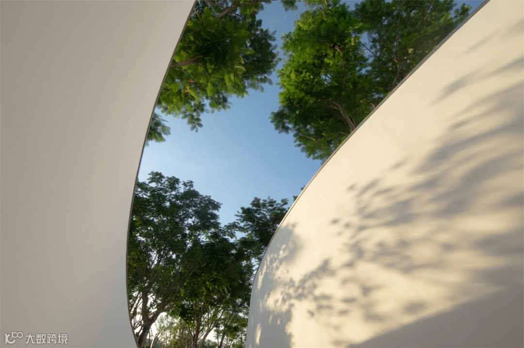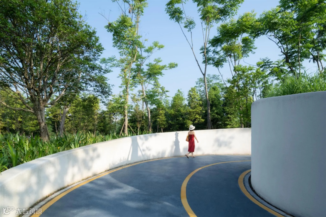 遇见麓岛的第一印象,就是一抹柔和的白色飘带,它轻盈地从我们的眼底掠过,用曲线流动地串联起整个场地。