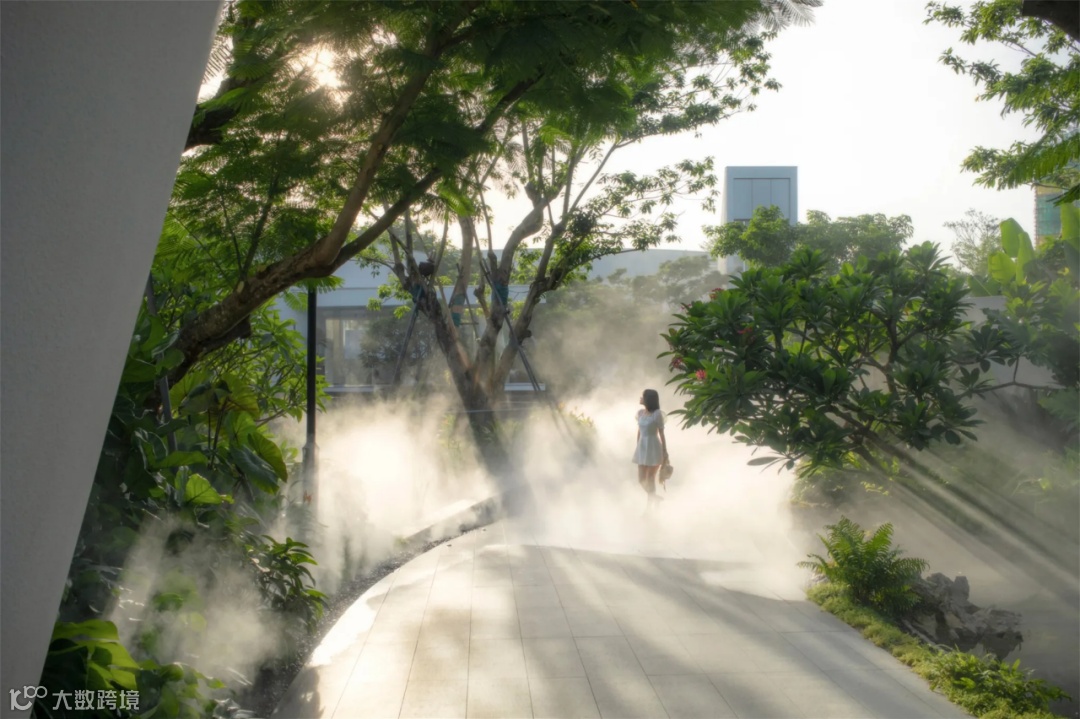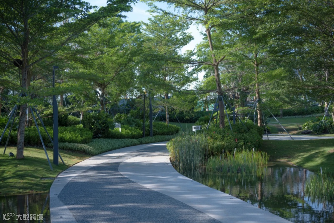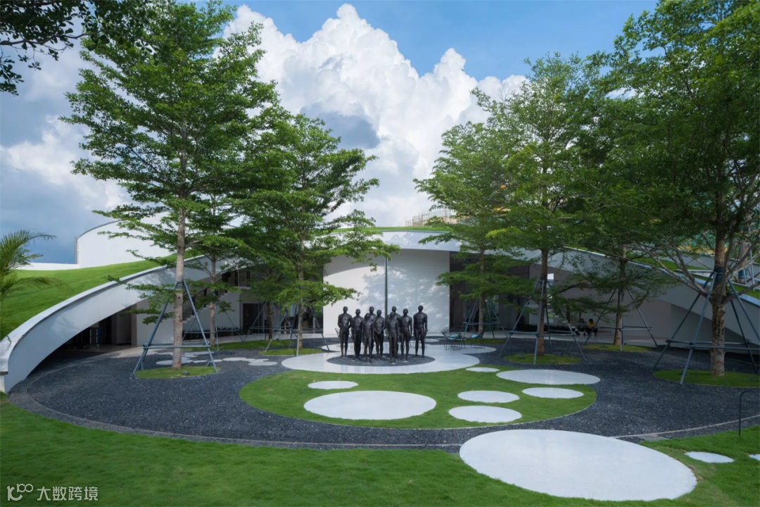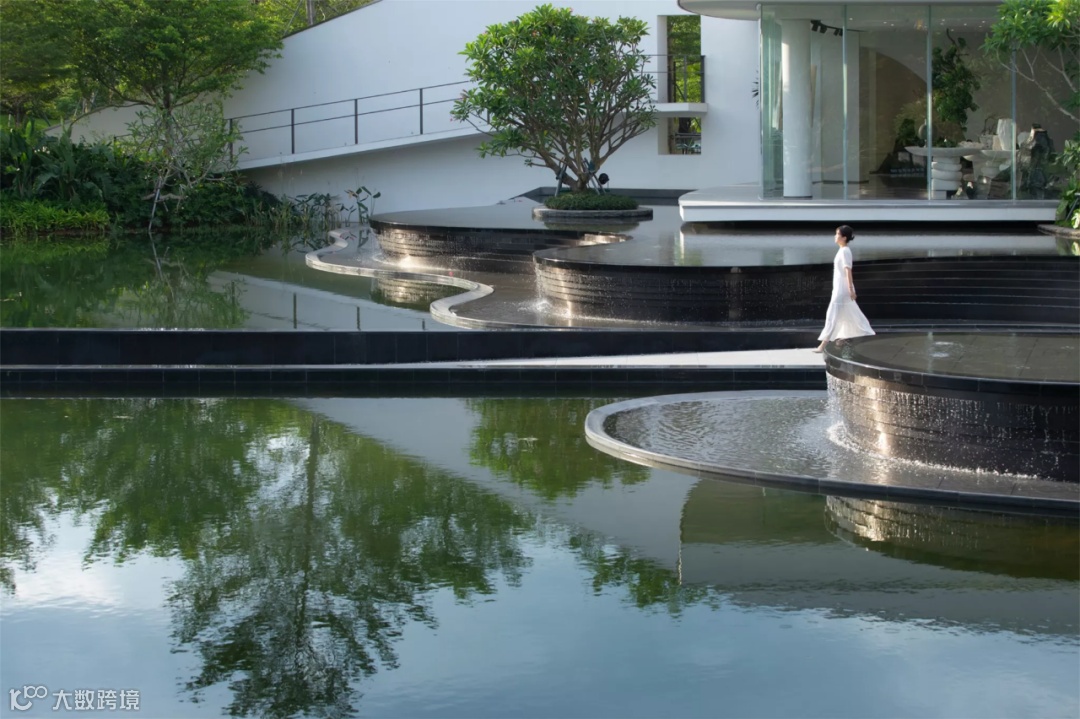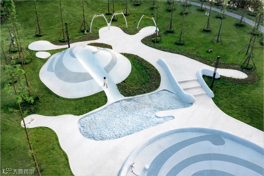 遇见麓岛的第一印象,就是一抹柔和的白色飘带,它轻盈地从我们的眼底掠过,用曲线流动地串联起整个场地。