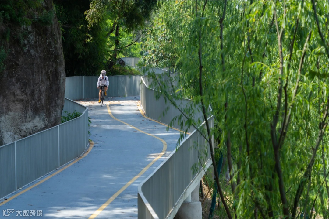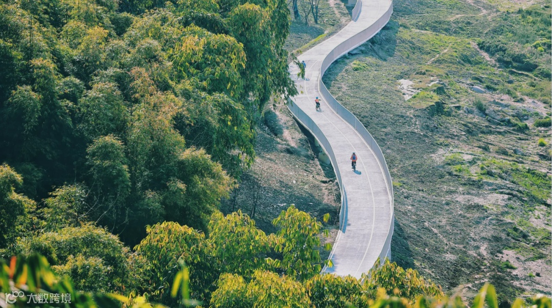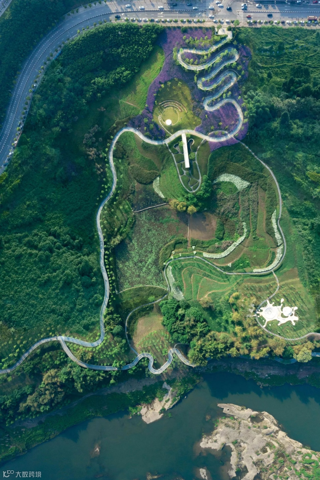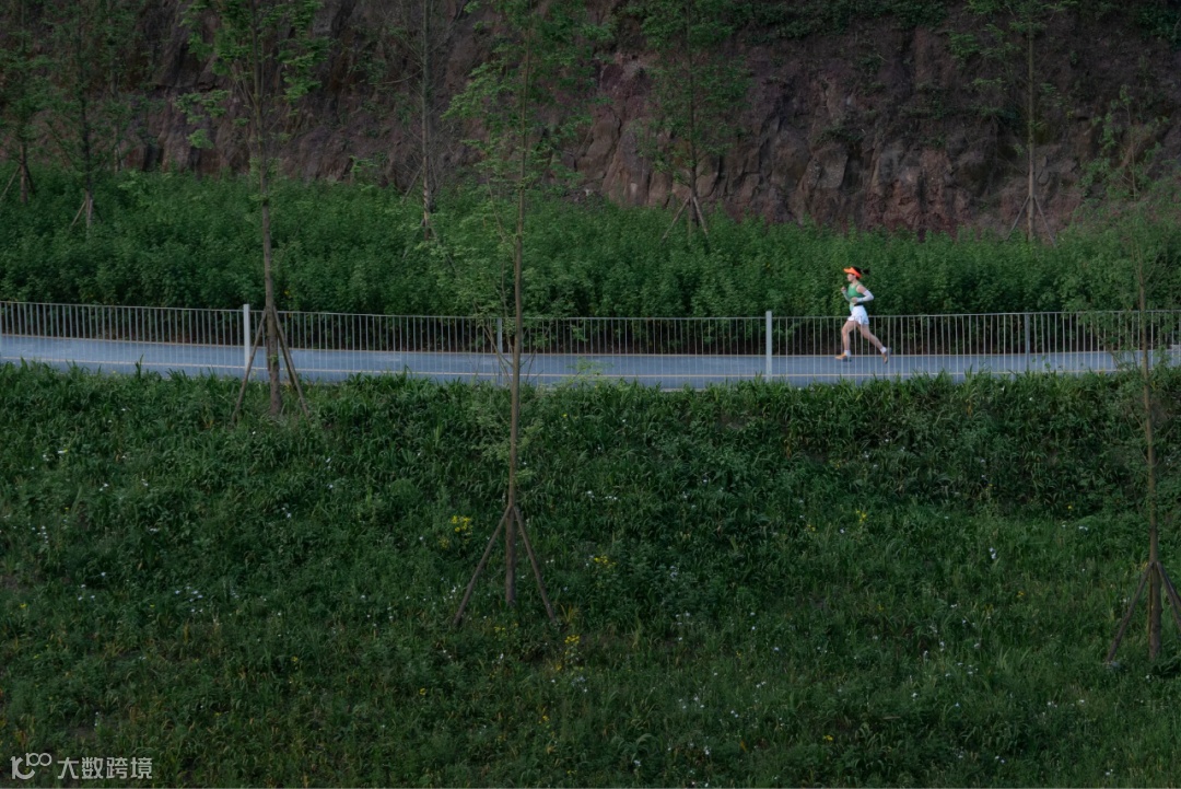 项目入口处于滨江大道,也是至高点。设计在此结合地形与植被布置“之”字形骑行跑道,跑道蜿蜒环绕一直延续至江边,最后分别从东西向,延伸至临近的礼嘉及悦来滨江休闲组团,完善嘉陵滨江生态长廊。