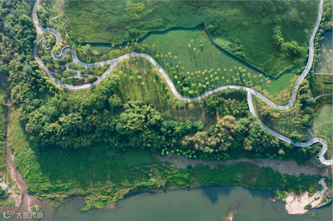 整个滨江带的自然生态基底优越。场地的原生植被较为完整未经破坏,一片原始梯田构成了天然的视野层次,临江的湿地滩涂维护着周边区域的水生态循环。这些元素都为景观提供了良好的条件。