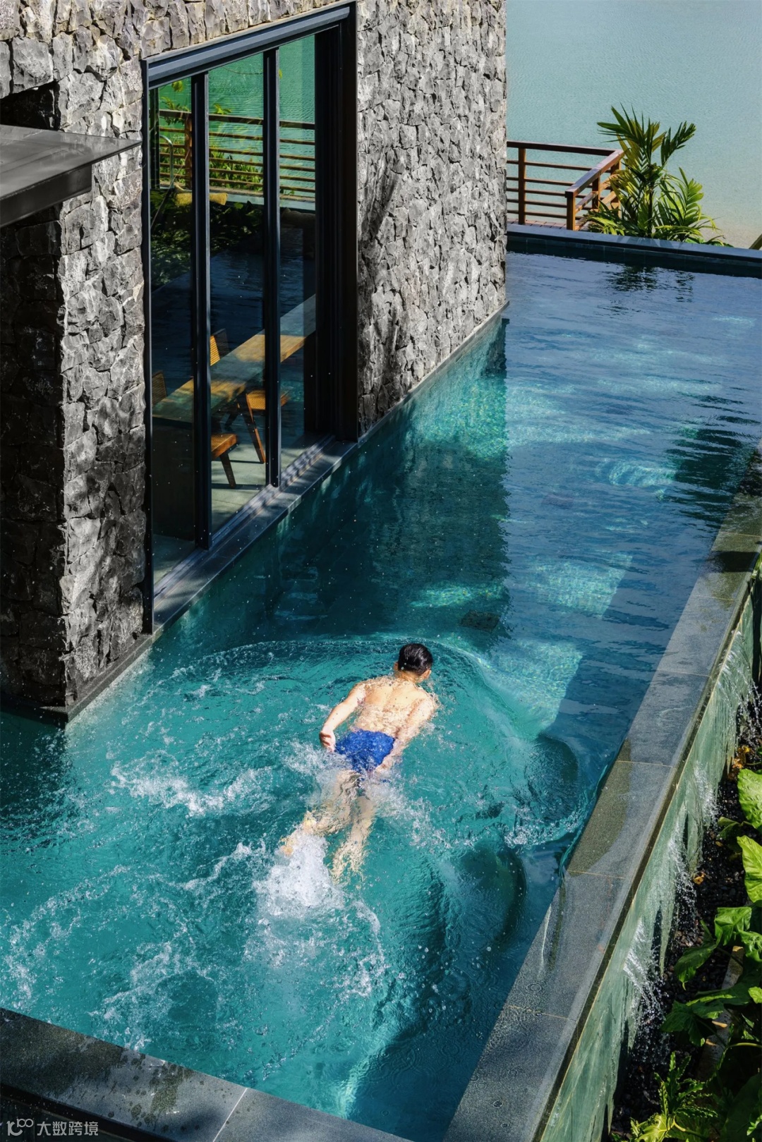 一片自然的石滩,流水冲刷着岩石,泉水叮咛下自然之意如约而至。在这里流水空间的设计收放自如,开合之间隐匿尘世的浮躁与喧嚣。