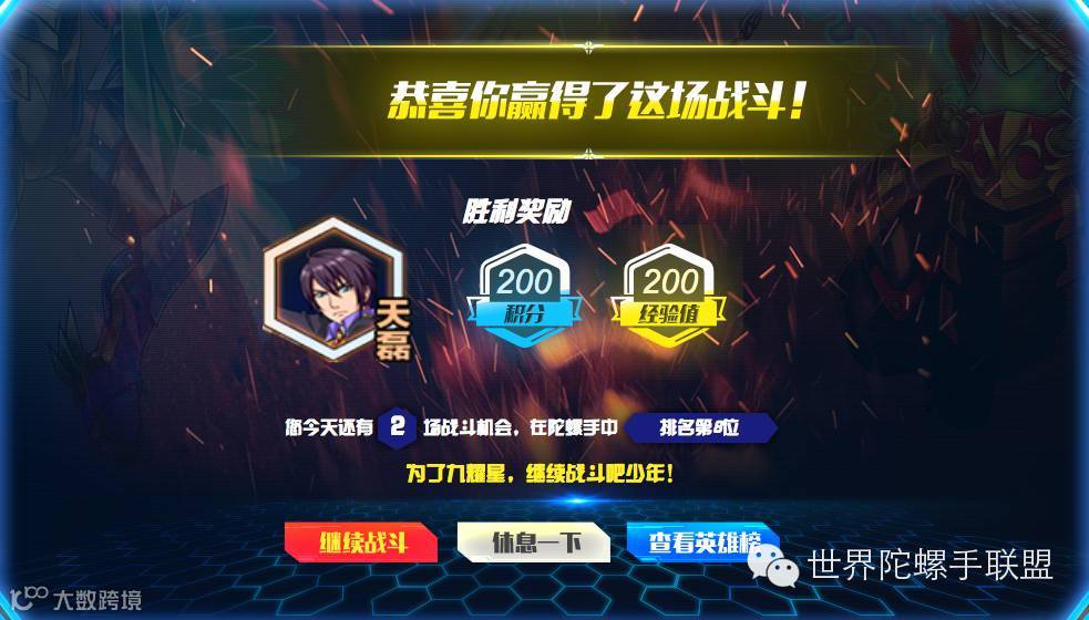 看了飓风战魂3官网新游戏的介绍,你是不是也燃起了陀螺对战的烈火呢?每天3次战斗机会,好东西要跟朋友分享哦!快快邀请其他陀螺手们一起参加这场激战九耀星游戏比赛吧!!!