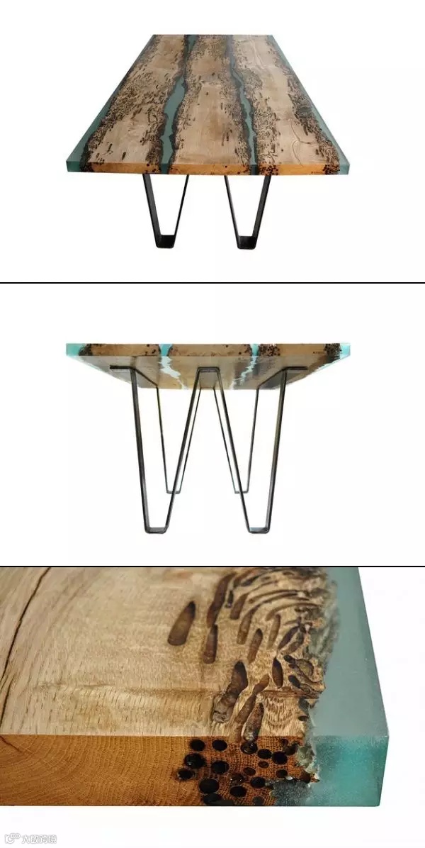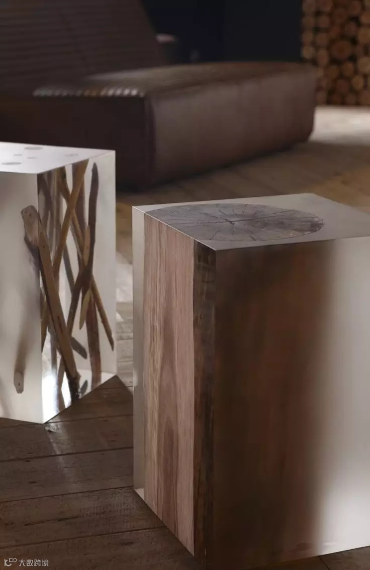 破旧的、下脚料的木头,往往是被当成废品去处理。如同朽木未必不可雕。烂木头与树脂的结合,其实并不是一个新的创意,从古至今,大自然的蜜蜡与各种材料的组合,就是一个典型的例子。