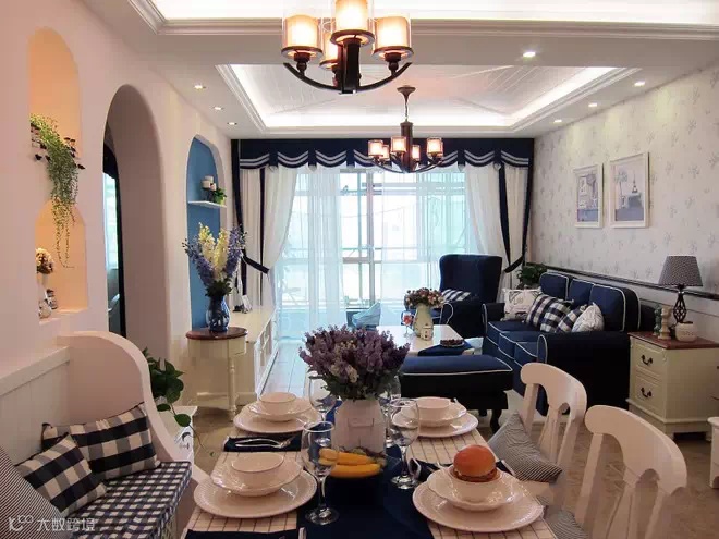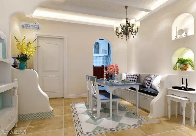 在整个装饰上,到处都充满着和谐的温馨,让人心情舒畅,简单质朴的肌理墙面渲染着地中海的情怀,大自然的色彩就在这样的背景。