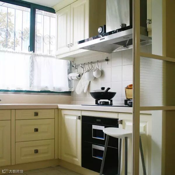 厨房越小越要有足够的台面操作空间(用过小台面的,太难受了),U型橱柜设计可以最大限度的增加台面面积。