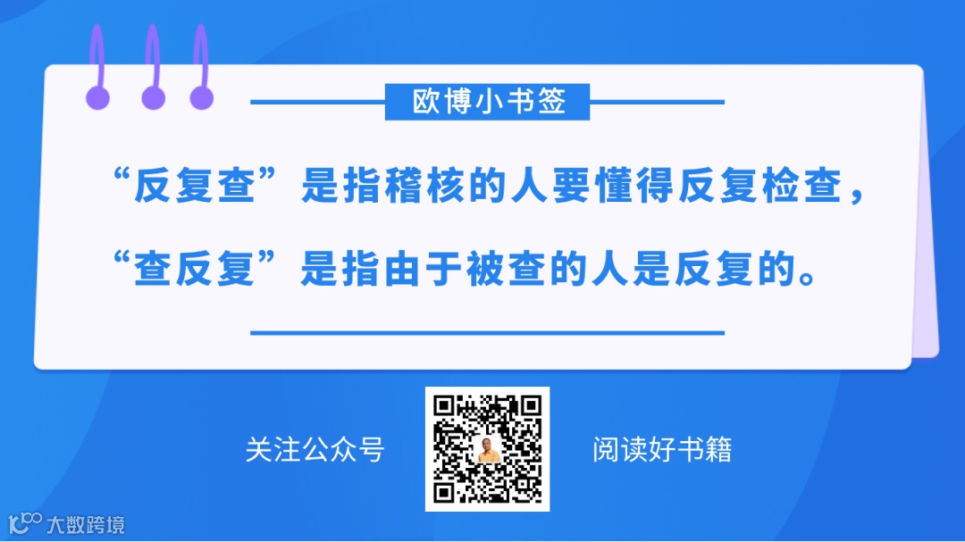“反复抓,抓反复”是海尔CEO张瑞敏的名言,我们的稽核就是“反复查,查反复”。“反复查”是指稽核的人要懂得反复检查,“查反复”是指由于被查的人是反复的,今天做了,明天又可能不做了,是反反复复的。所以,我们只能以反复对反复:你今天做了,明天不做,那么我今天查了,明天又查;你明天做了,后天不做,那么我后天又查。