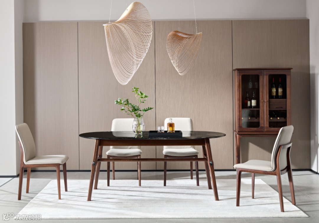 「元宗家具」北美黑胡桃系列,将无形的情感融于有形的家具,经匠人悉心打磨后的北美黑胡桃木,光泽好有质感,结合现代时尚的设计,恰到好处体现了年轻感,优雅有格调,在灯光的渲染下,呈现出一个实用与艺术融合的生活空间。