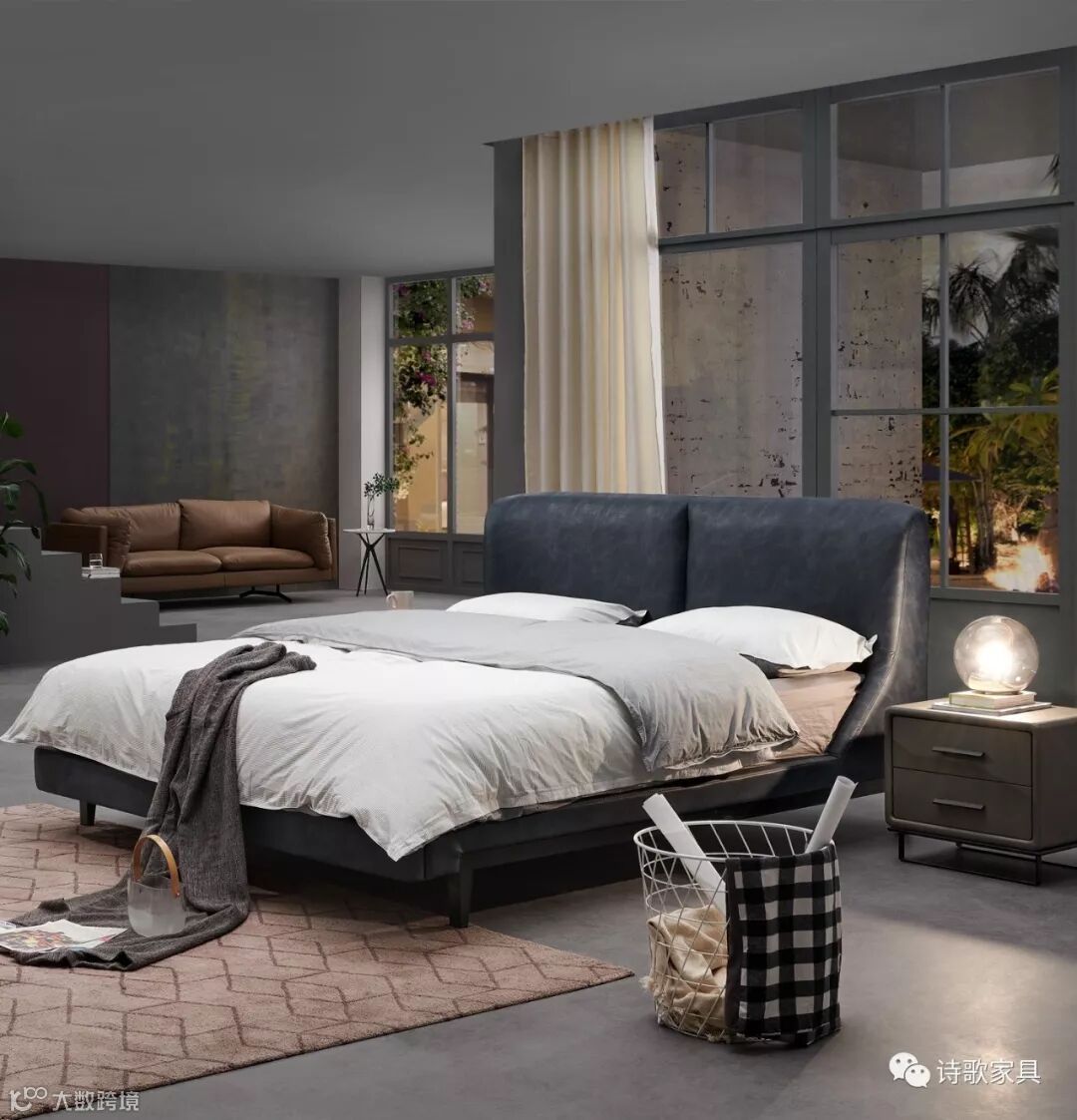 承接客厅的家具配色,同样高级灰色的床体,让通透的空间变得更加亮眼,亮色的床品使干净的格局多一点视觉上的冲击。