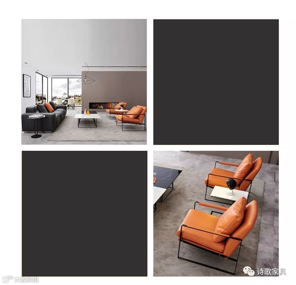 高级灰质感的沙发,迎合整体装修风格,橘黄的扶手椅,点缀色彩,让家变得精致又有格调。