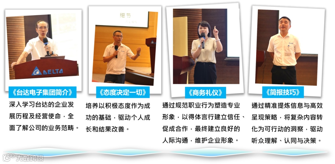 华南地区总经理周先生热烈欢迎新进干部的加入。周先生围绕华南区营业额的总体趋势、厂区布局与核心产品类别、工厂运营关键策略以及人才发展战略核心议题,与新进干部们进行了深入分享。并强调:台达高度重视人才培养,堪称人才摇篮, 对于每一位加入台达的新人,公司都将倾注大量优质的培训资源和发展机会,助其充分施展专业、激发潜能。