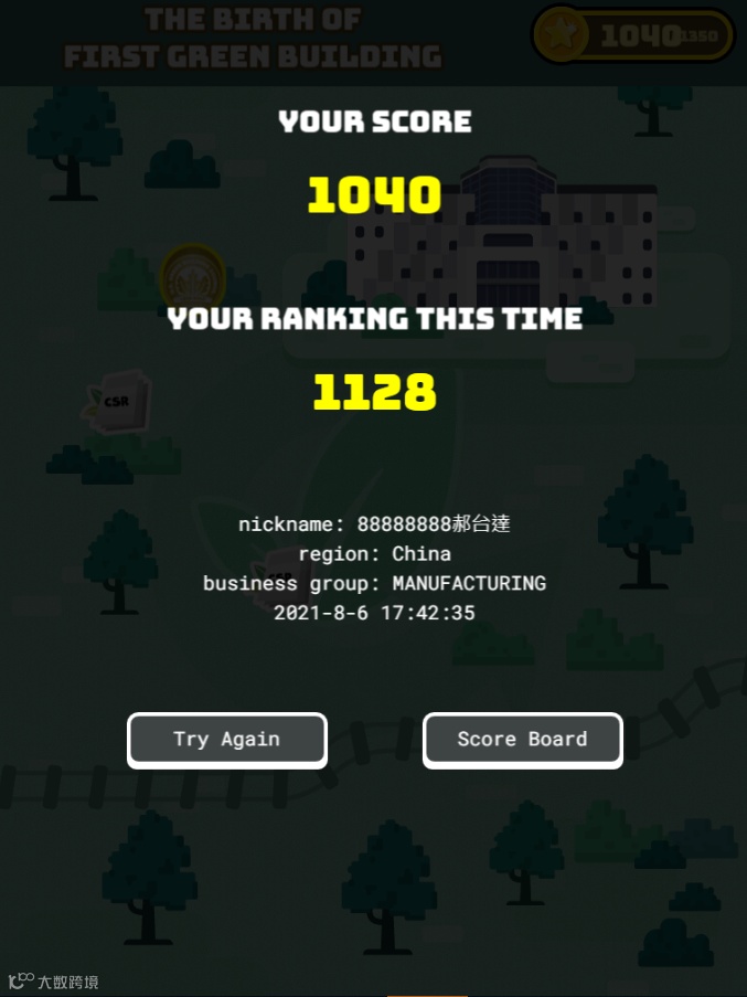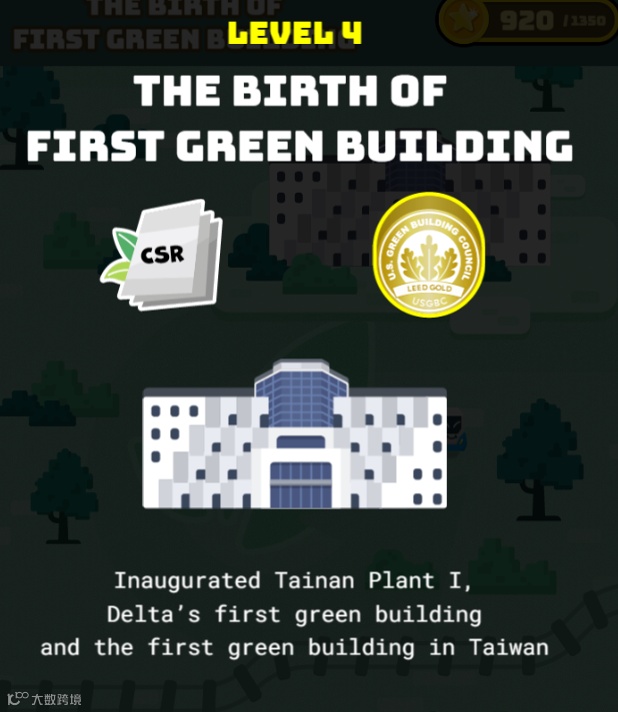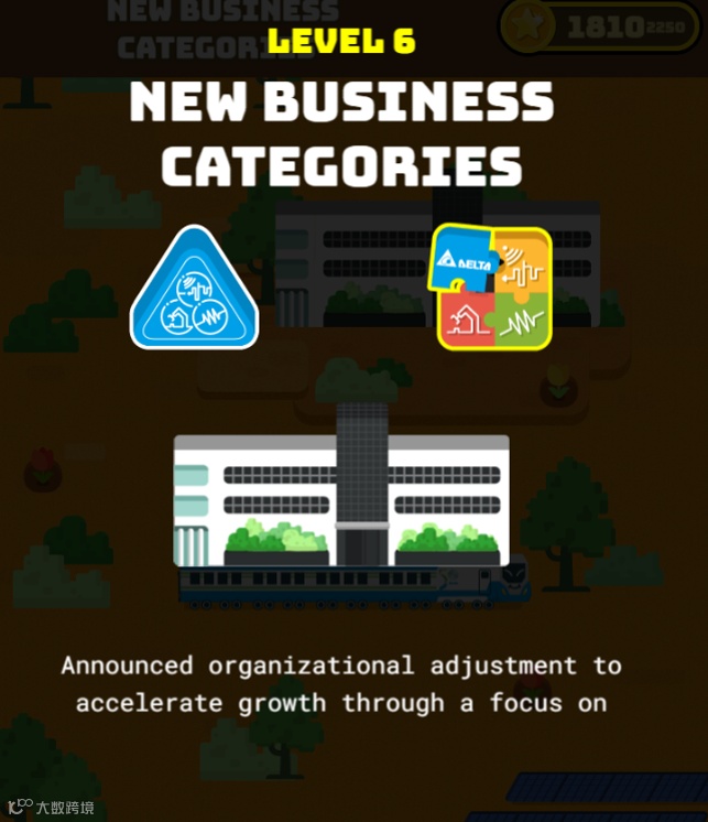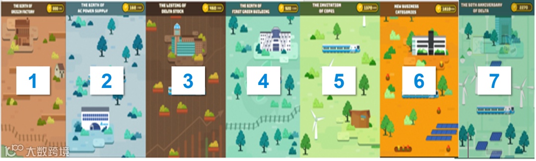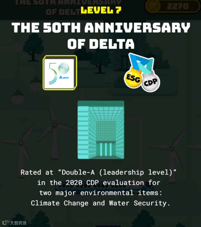 本游戏共有7关,有对应破关分数,每一关代表台达发展演进历史进入全球15名 ,就能拿高额奖金!