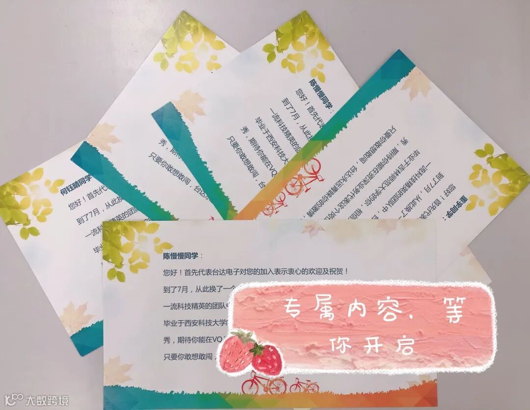 专属的入职欢迎信已经在储干们的床位上静静等候!