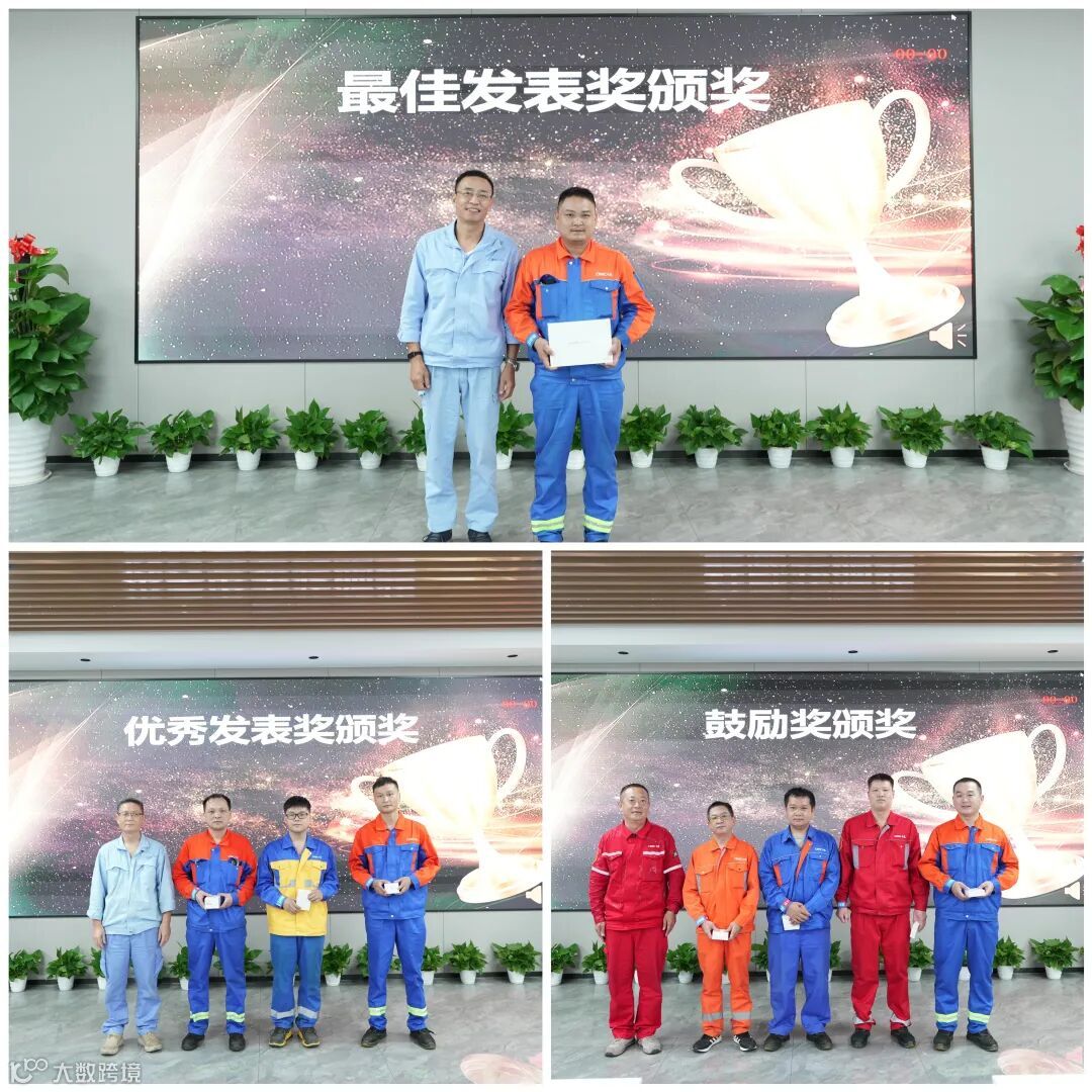 经评委现场投票,制造一部何祖政凭借“底架装配台20尺效率提升改善案”斩获最佳发表奖,陆汝坤、王金行、卢少烈分别获得优秀发表奖,马鲁兵、侯林果、巫健强、胡智坤分别获得鼓励奖,公司领导为获奖员工颁奖。
