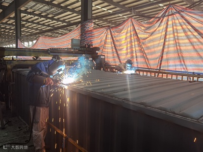 有一次在焊接顶板,有一条焊道是前工序自动焊焊接的,当时这条焊道出了气孔,如果直接补的话虽然也可以,但是会成型不好看。于是他并没有急于动枪,而是拿出了打磨机,把出气孔的那一部分给磨平了,然后才开始焊接起来。