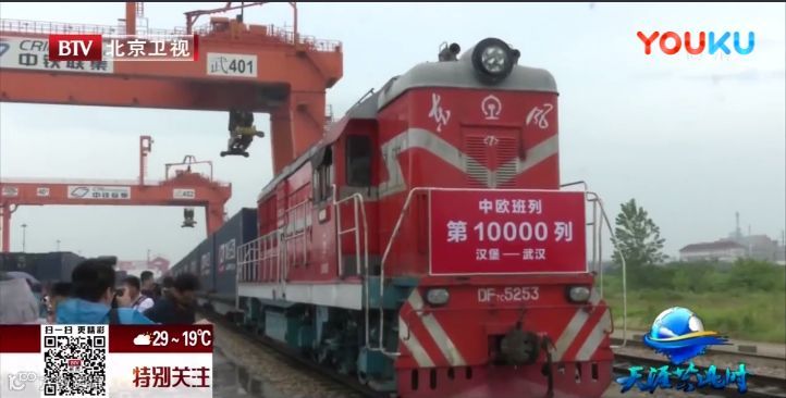 旁白:截至8月26日,中欧班列累计开行已达到整整10000列,运送货物超过80万标箱,国内开行城市45个,到达14个欧洲国家43座城市。货物品类也由最初的日用百货、服装产品拓展至机械设备、电子配件等200多个品类,越来越多国家的民众从中受益。