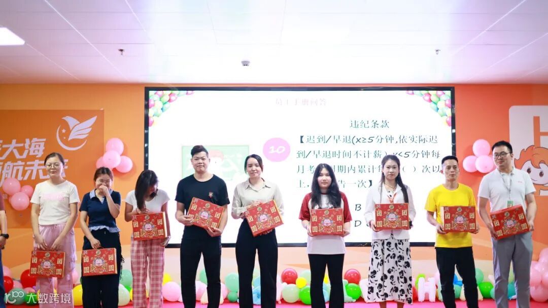 在员工手册问答环节,不仅是知识的比拼,更是员工对企业的深度认可。现场员工踊跃举手,从公司信息到管理条例,从员工福利到奖惩绩效,每一个答案都展现出大家对企业的认可,对管理的认同,让企业文化在游戏中得到了传承。