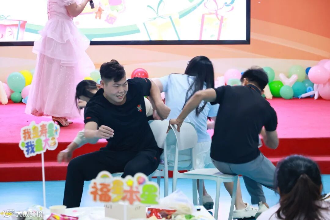 温情满满的问答游戏结束后便是寿星发言环节,伴随着舒缓的音乐,寿星代表将在领益生活多年的点滴娓娓道来。朴素的文字、真挚的话语引发了现场的共鸣,大家眼中饱含泪光,是对生活的期许,也是新生一岁的展望。 随后,击鼓传花小游戏火热登场。鼓点响起,代表幸福的“花”在寿星手中快速传递,音乐停止,拿到“幸福”的员工兴奋的走上舞台,展示自己的表演,赢得了热烈掌声。 击鼓传花之后就是激烈的抢凳子大战,八人转圈一决胜负,抢到同一把凳子的寿星通过划拳来决定凳子的归属,精彩纷呈,大家欢笑不断。