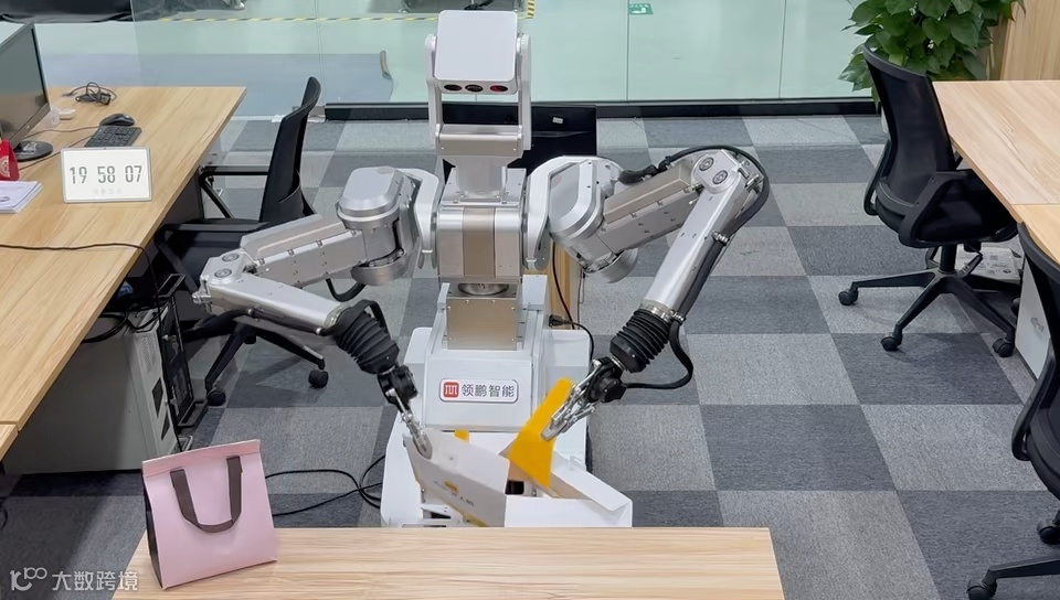 其仿生双臂采用钢丝传动与动力后置结构,16个自由度赋予超高灵活性,单臂工作范围负载达 4kg,近身操作区负载可达 6kg,±0.08mm 的重复定位精度可精准应对复杂双手作业;“有巡” 底盘凭借两轮自平衡设计,实现小体积、原地转向与越障能力,可灵活出入电梯等场景;“观眇” 传感头搭载 3D 激光雷达与双目结构光视觉系统,能快速完成场地扫描、目标识别与动向判断。