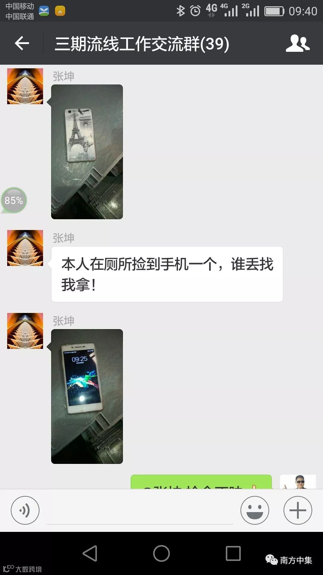 千百年来,“拾金不昧”作为中华民族的传统美德,一直传承至今。而他也是这一传统美德的传承者之一。2月3日上午9点30分,冲压流水线E班微信群里发出了一条失物招领信息,消息正是他发出的,原来是他在去洗手间的路上捡到一部手机,他想,失主肯定会很着急,为了尽快找到失主便在班组微信群里发了消息。消息发出后很快被人转发到其它班组群,于是,很快就找到了材料D班的失主姜希波,此时姜希波正在焦急的四处寻找。拿到失而复得的手机时,姜希波非常感激,表示要酬谢他,也被他婉言谢绝了。