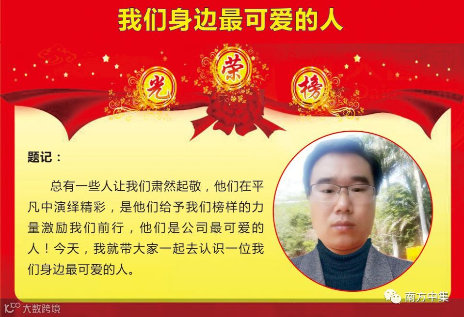 总有一些人让我们肃然起敬,他们在平凡中演绎精彩,是他们给予我们榜样的力量激励我们前行,他们是公司最可爱的人!今天,我就带大家一起去认识一位我们身边最可爱的人。