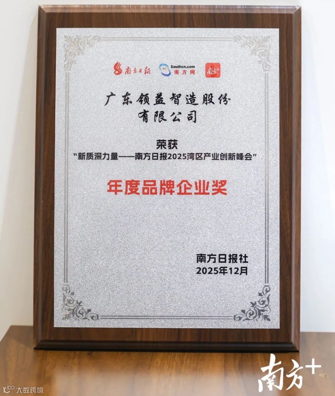 12月26日,由南方日报主办的“2025湾区产业创新峰会”圆满举行,峰会以“政企共赢发展新质生产力”为核心主题,汇聚湾区产业龙头、创新企业及行业专家,共探高质量发展新路径。凭借在新质生产力培育中的突出成果与产业引领作用,领益智造成功斩获“新质深力量・年度品牌企业奖”,成为湾区制造业向高端化、智能化、绿色化转型的标杆代表。