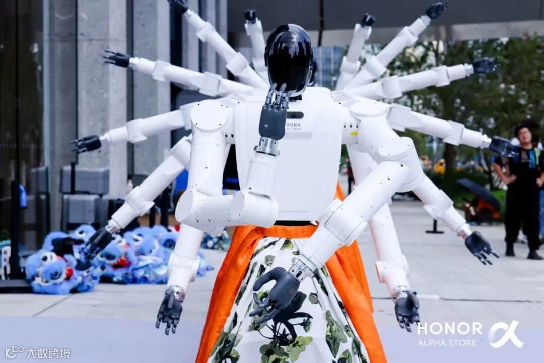 9月30日,荣耀阿尔法全球首家旗舰店在深圳湾万象城盛大开业,作为荣耀AI生态战略落地的核心载体,门店现场上演了一场科技与文化交融的视觉盛宴:领益智造旗下柔性运动典范“领跃”机器人以经典舞蹈“千手观音”惊艳亮相,通过百余次精准关节联动再现传统艺术神韵,用工业精度诠释文化内涵。