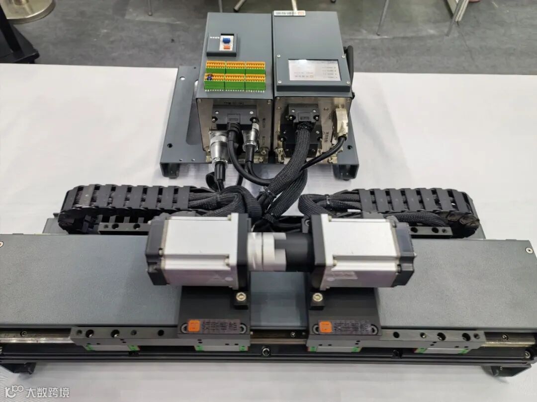 其中,高性能同步运动控制展示装置主要体现驱控高速过程和加减速过程中两个轴甚至多个轴的同步性能,从两个方面展示了伺服系统的综合性能。一是伺服驱动部分稳快准,即低稳态误差,低动态误差和低调整时间;二是运动规划插补指令的高同步性,指令规划周期低至 1ms,轴间插补同步周期 10ns,最终实现多轴高加速条件下丝滑咬合分离。测试数据显示,该装置最高转速可达3000转/min。