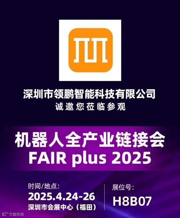 4 月 24 日,机器人全产业链接会(FAIR plus 2025)在深圳市会展中心(福田)盛大举行,领益智造受邀参展。公司全资子公司深圳市领鹏智能科技有限公司(以下简称“领鹏智能”)携减速器、智能工业控制器、双臂机械手及高性能同步运动控制展示装置等机器人核心零部件及智能制造装备精彩亮相,展位号为 H8B07 。
