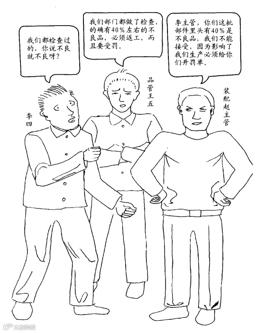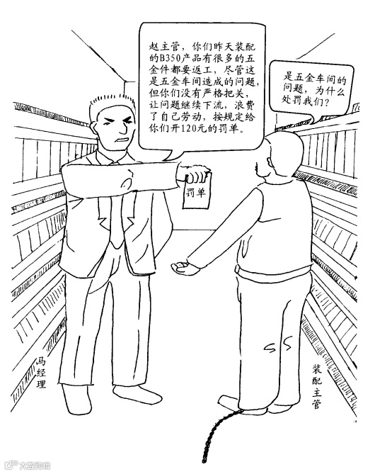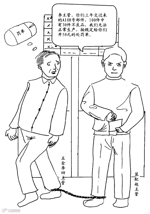下工序对上工序的错误不处罚,继续往下流,则追究下工序的责任,迫使他开出罚单,严格把关。同时,这样也能让上工序理解下工序为何对其进行处罚。