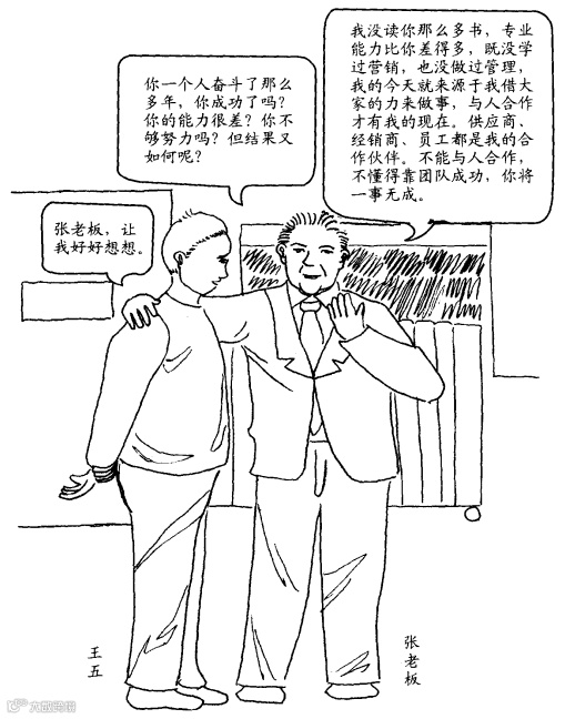 很多老板从创业到成功,都是一个人打拼出来的,他们就像那些埋头读书的大学生一样,靠自己成了习惯,就会始终坚持这个模式,不明白创业和发展根本不同,抱着创业时的思维不放,自然不懂得组建企业壮大所必需的核心团队。