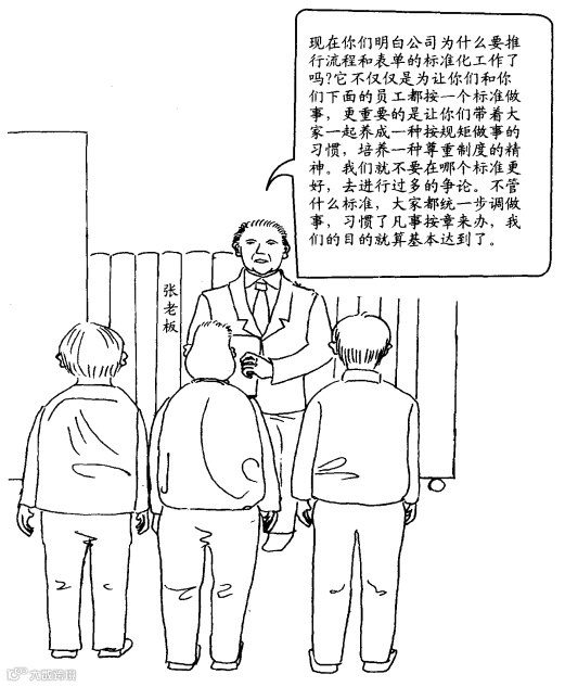 单纯的队列训练当然不能完全改变工厂的人。应该将他们日常的行为规范化,形成作业流程和作业指导书,然后以此作为行为的标准,严格执行,用标准化工作来训练人学会“放弃”。