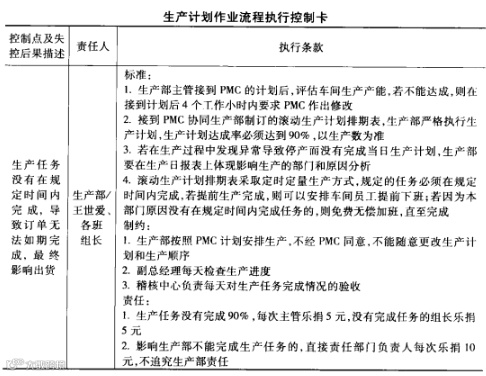 下面是我们在中山创英灯饰公司所做的一个生产计划作业流程控制卡。