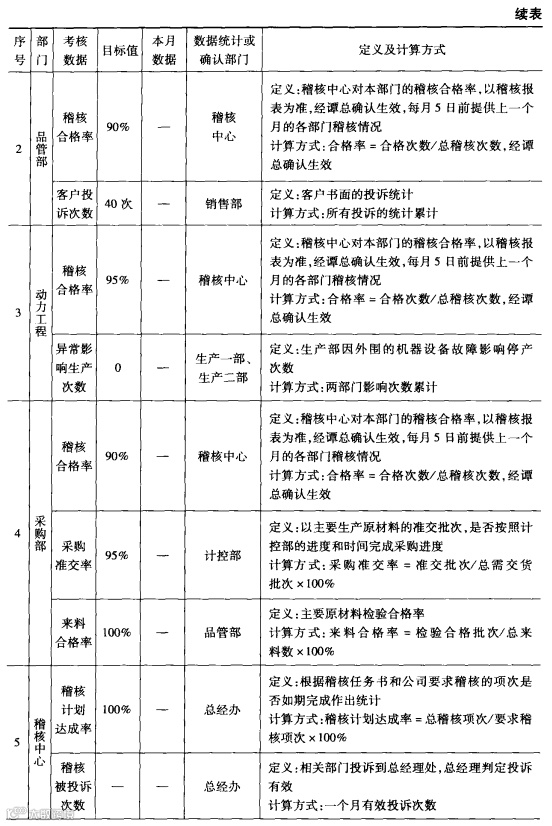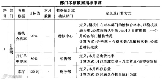 考核必须以数据指标的达成作为唯一标准,根据不同时间段,对重点考核的数据指标作出调整,每次确定新指标必须以在上一个考核的达成的基础上进行改善为前提。(产量、品质、成本等)