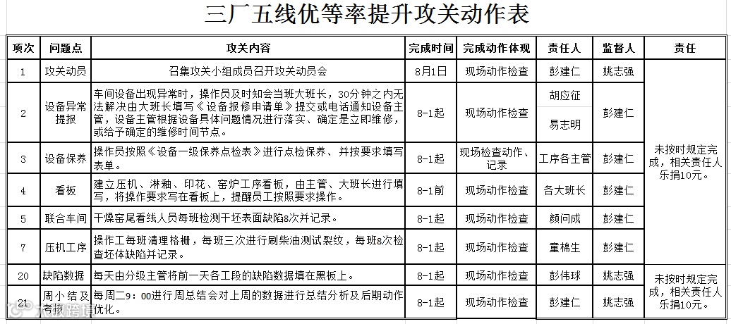 1.将三厂五线的全体人员纳入攻关的成员,由生产总监挂帅来指挥这一场改善活动。
