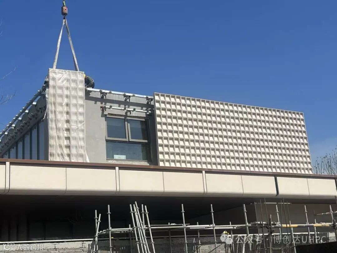 材料革新:采用C120级UHPC材料,抗压强度达120MPa以上,厚度100mm的镂空板实现"刚柔并济",采用浇筑工艺,完美承载复杂结构造型。