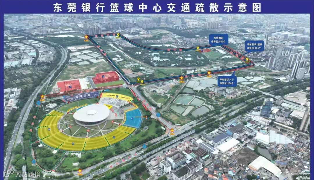 步行观众请从东莞银行篮球中心5号门进出场馆。