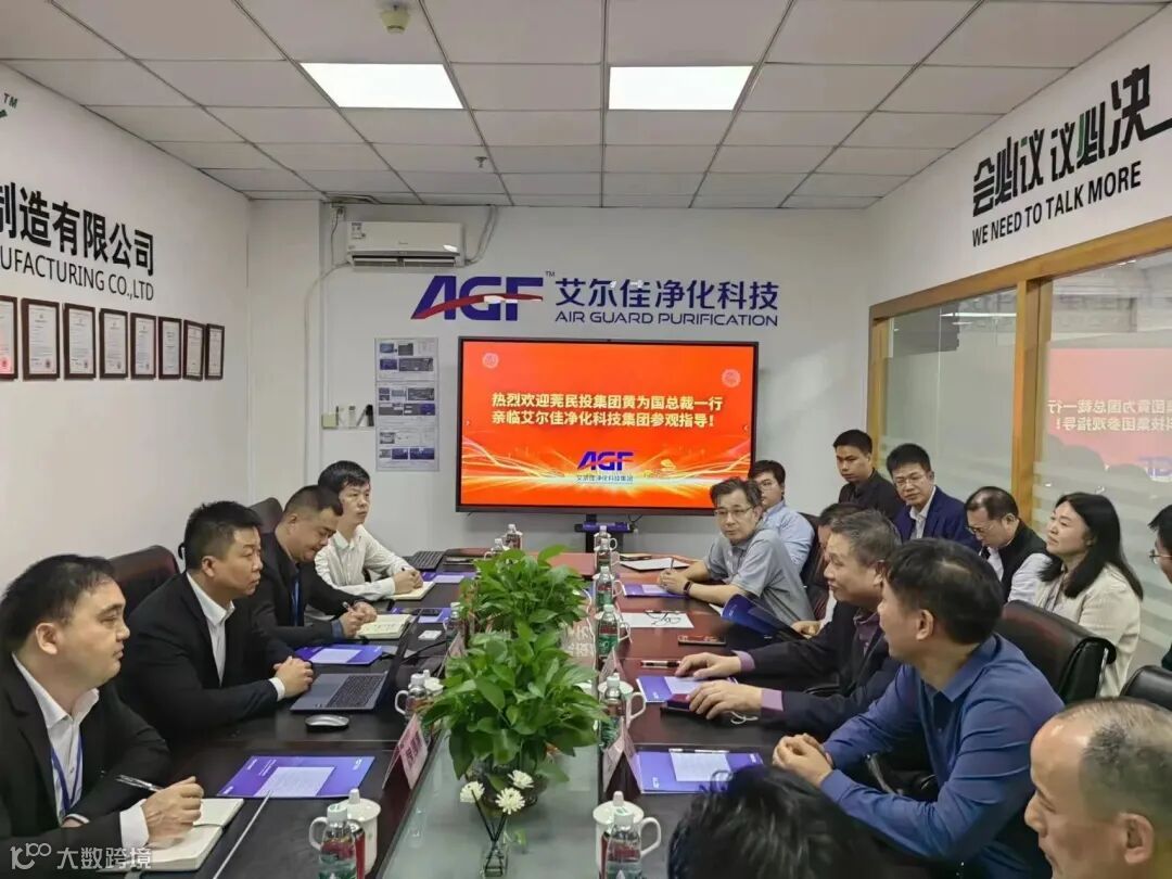 11月27日,东莞民营投资集团有限公司(以下简称“莞民投集团”)黄为国总裁带领团队和东莞市绿色建筑协会邓建军会长、暖通空调行业协会卢锦贤会长、东莞科技创新金融集团刘胜军总经理、深圳市国华投资管理股份有限公司王军董事长以及东莞市帝豪集团有限公司梁正杰总经理等一行人亲临艾尔佳净化科技集团进行深入的考察交流,艾尔佳净化科技集团张武董事长携公司高层给予热情的接待。