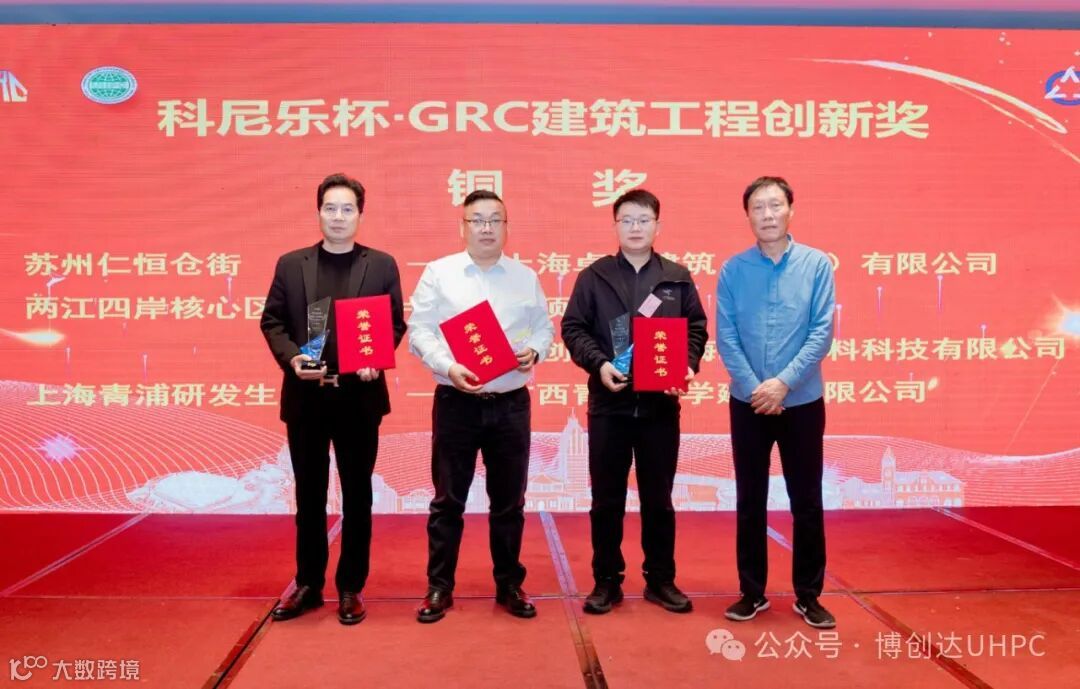博创达于2024年11月底在青岛举办的GRC/UHPC行业发展研讨暨标准会议中获得科尼乐杯·UHPC建筑工程创新奖银奖和GRC建筑工程创新奖铜奖。