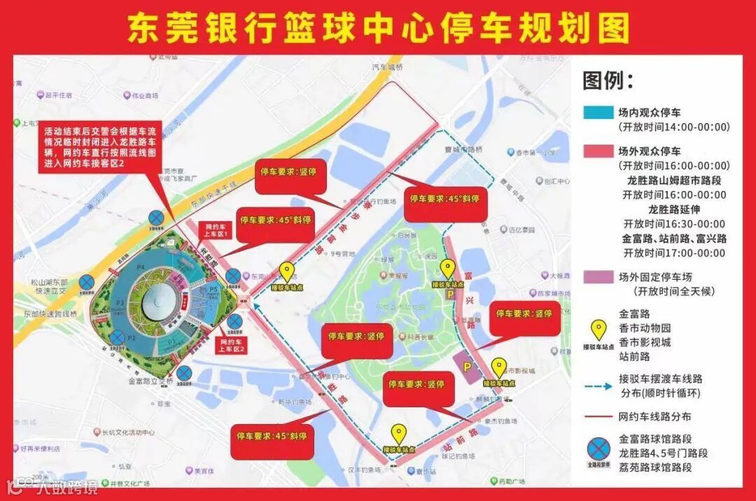 离场候车定位:东莞银行篮球中心6号门。