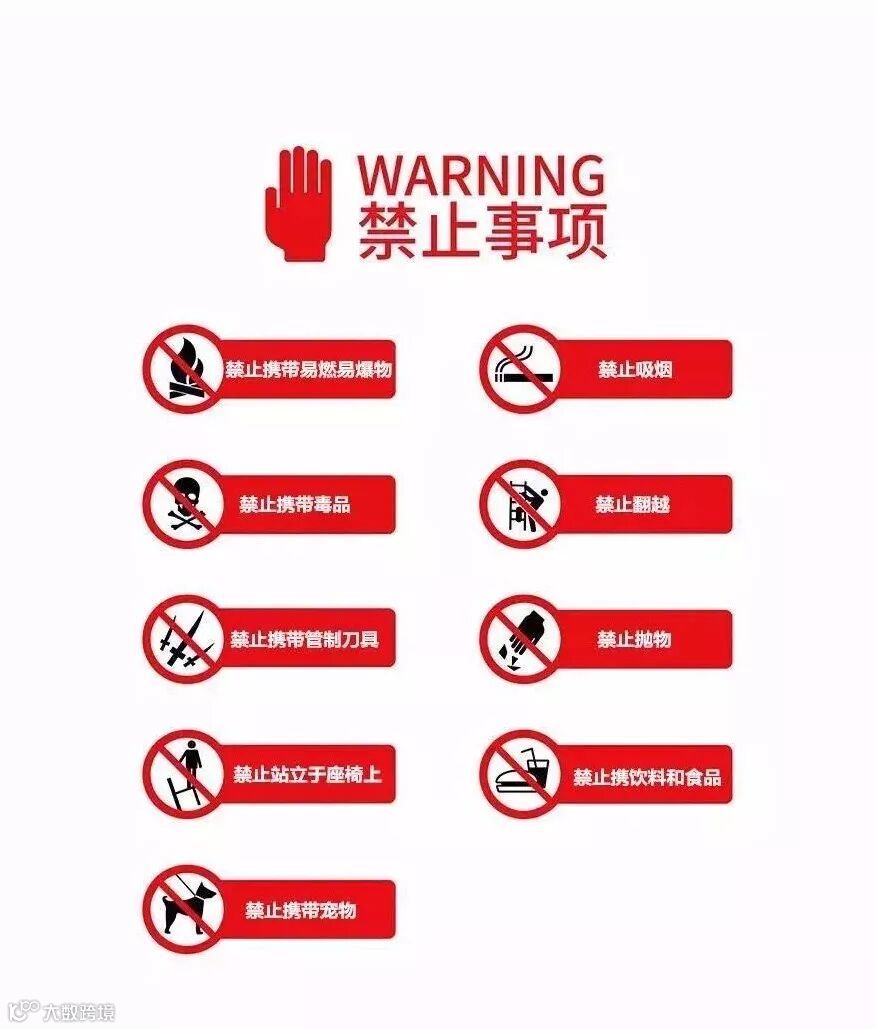 2、严禁携带易燃易爆物品、管制刀具、食品饮料、摄像机、照相机、激光笔等物品。