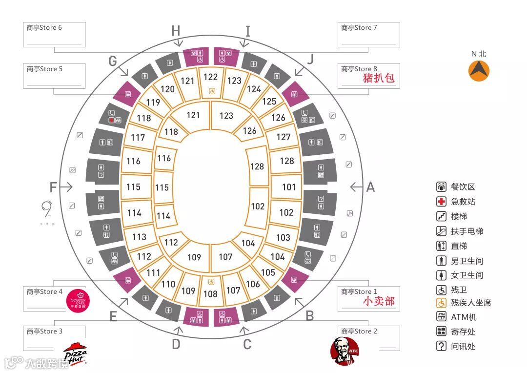 场馆准备了丰富的餐饮服务,歌迷朋友可在场外蛮牛鲜生就餐,也可以在馆内购买必胜客、KFC、七港九饮品、猪扒包、特色鱼蛋等食品,出于安全考虑禁止歌迷朋友携带瓶装水、饮料和食物进场,歌迷朋友可以在场馆吃饱或者进场后购买。