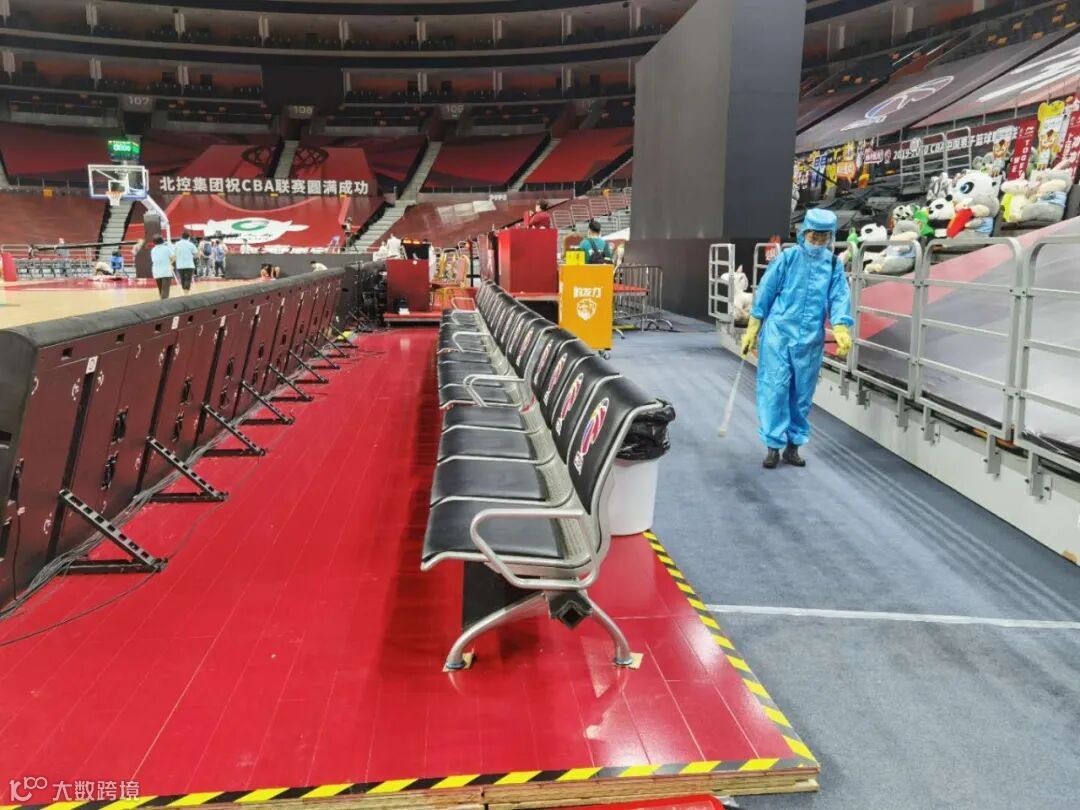 虽然CBA复赛期间采用空场赛会制,但防疫工作依然不能松懈。赛事筹备期间,在组委会的安排下、市卫健部门的指导下,我司对到场人员进行全面排查,所有到岗工作人员都必须进行核酸检测,并每天至少进行两次人员测温检查。场馆按照功能流线共设置4个临时隔离点及配置相关防疫物资,并在赛前协助相关部门进行防疫演练,完善各种防疫应急预案。本次赛事严控健康异常人员及无关人员进入场馆。