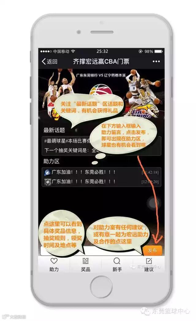 球迷们可以向【东莞篮球中心】发送指定关键词,激活刮刮卡!