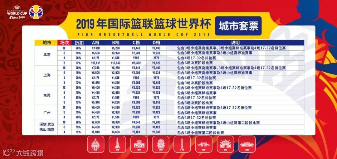 而2019篮球世界杯单日通票和单场球票将于6月3日开售,据大麦网介绍提前订购城市套票将享有8折优惠。点击阅读原文立刻抢票,精彩篮球世界杯不容错过!