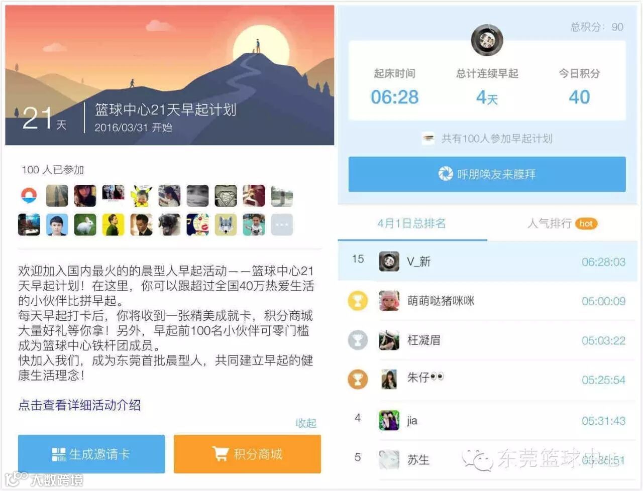 而在东莞,出现了一大批新的晨型人,他们积极响应东莞篮球中心的组织号召,正参与一场欢乐健康的全民微信活动!