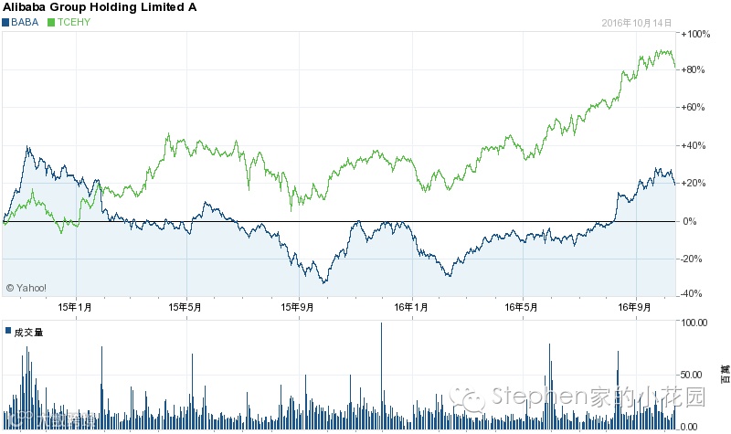 腾讯跟阿里股价比较,结果腾讯大幅跑赢阿里