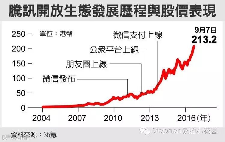 2004到2016的腾讯股价,13年间增长最高298倍,今天(10/27)增长285倍